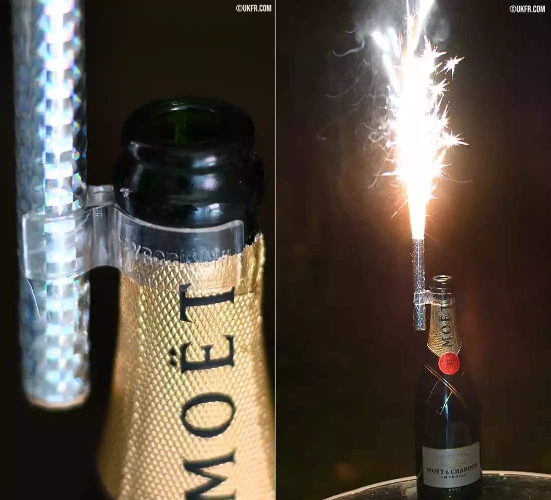 This image shows the “sparklers” attached to the bottles: