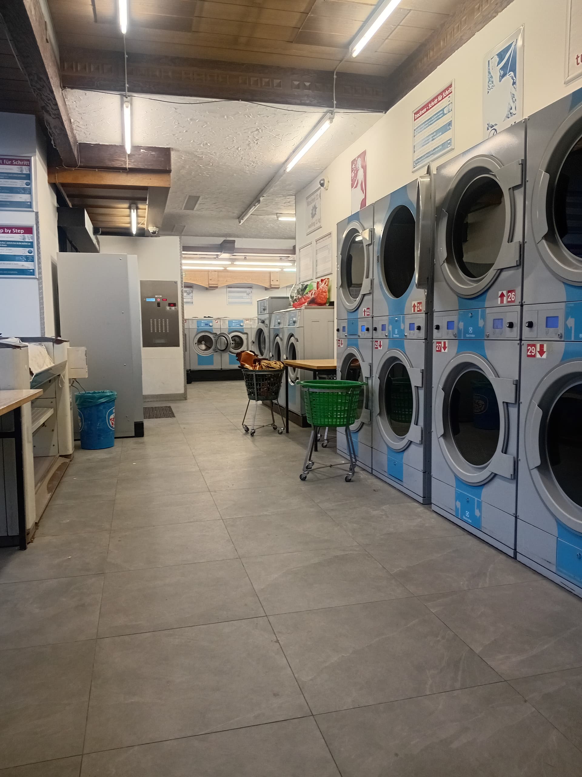 But let me explain, after returning to DE the one room pokey hole under the roof simply did not have the space to install a washing machine so a laundrette is the only option.