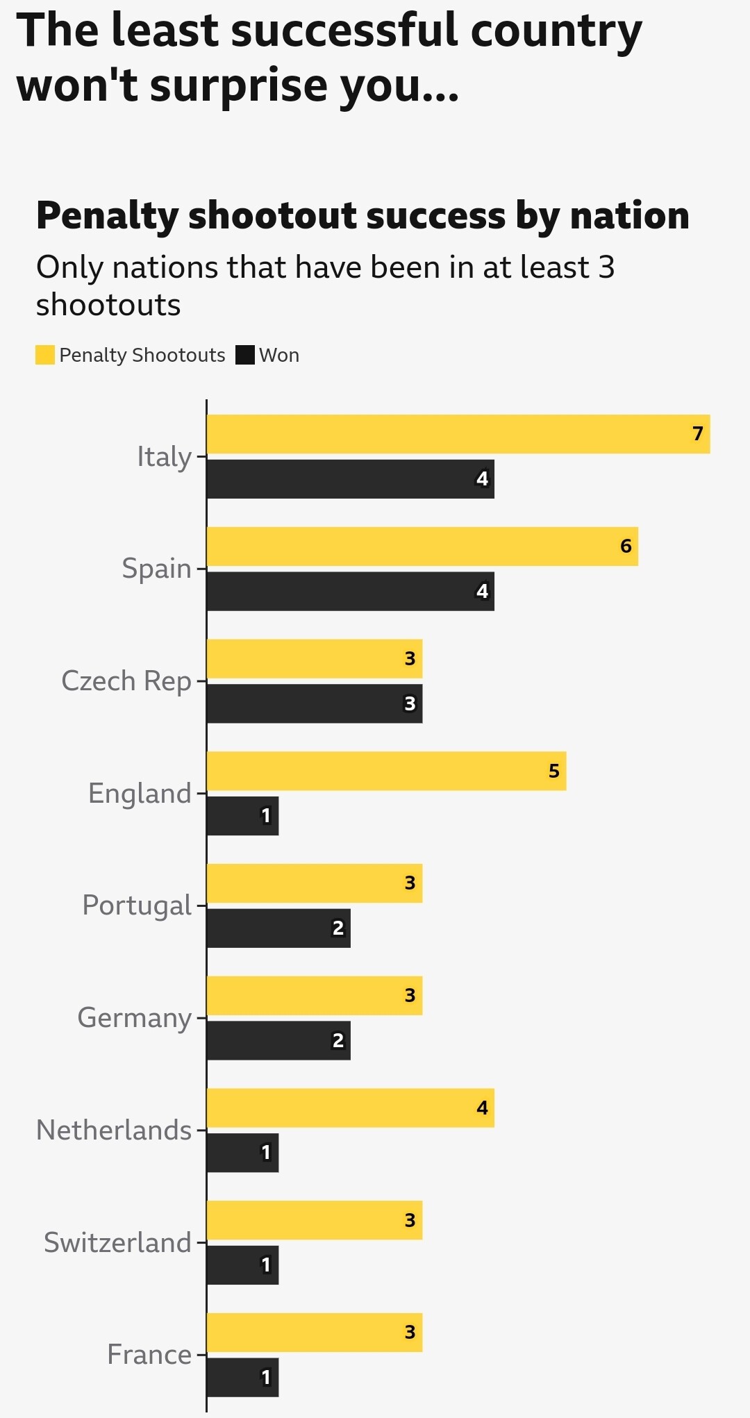 The above table is for the Euro, yes (List of UEFA European Championship penalty shoot-outs - Wikipedia). Your data for the World Cup seems to be inaccurate wrt the most shoot-outs played (List of FIFA World Cup penalty shoot-outs - Wikipedia)
