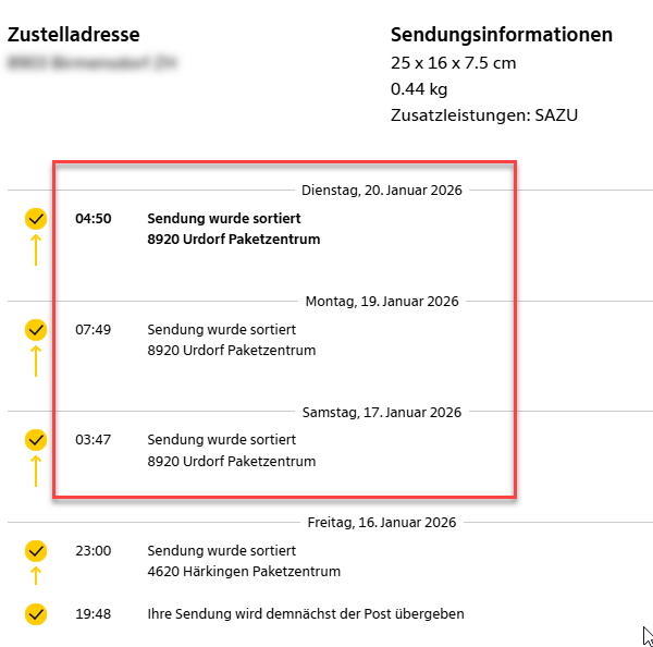 I once had a package do a detour via Crans Montana but it made it here in the end. I was able to track that one on the app.