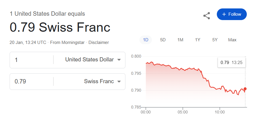 The $ is down around 1% today