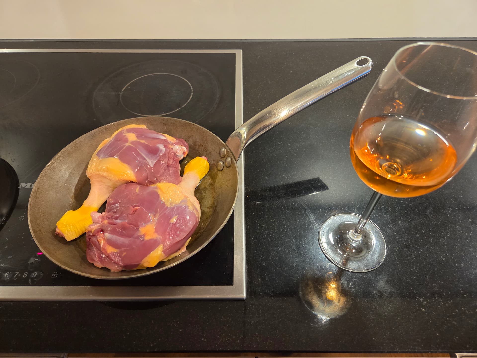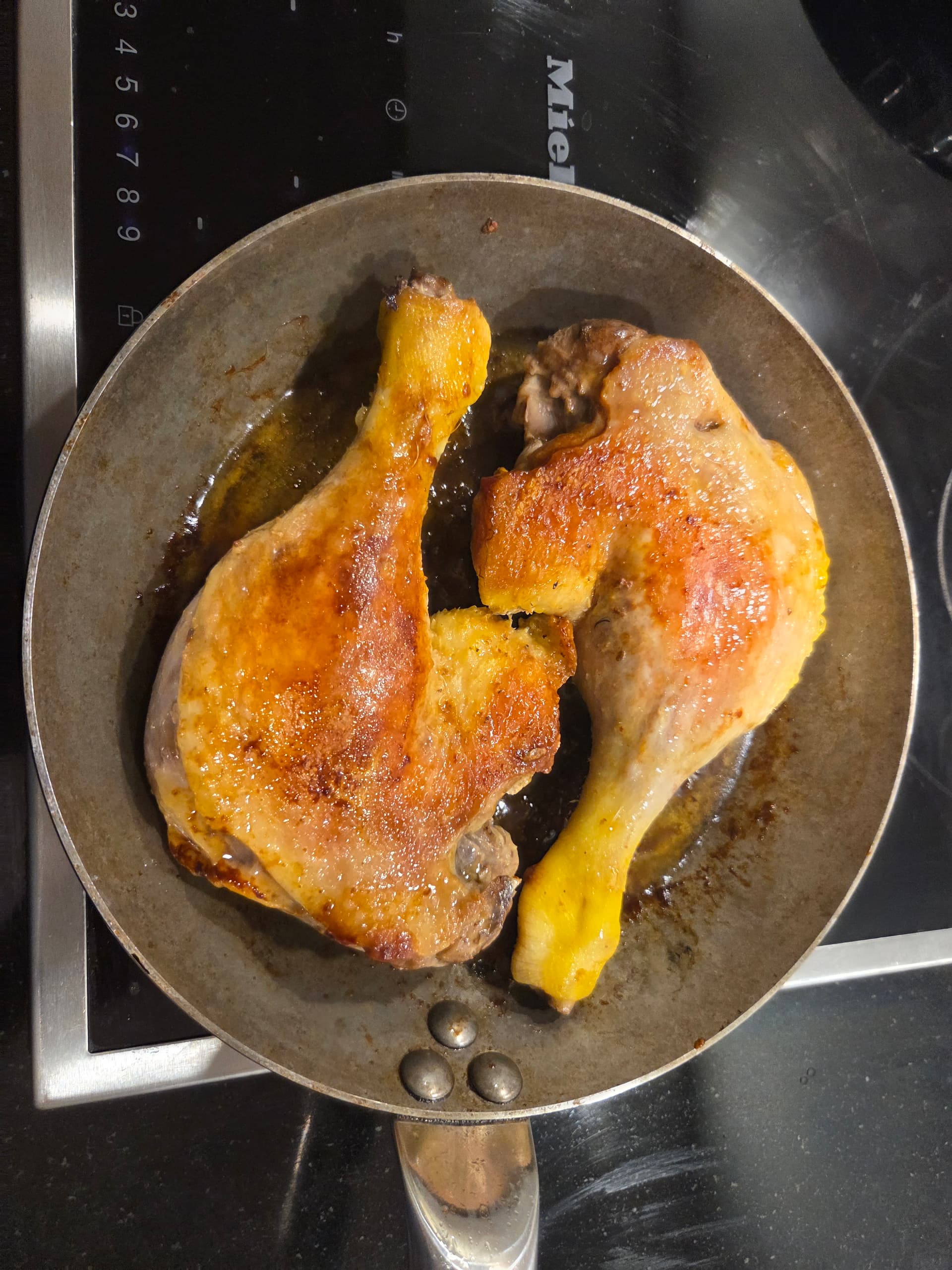 Patiently looking at the duck in the frying pan. Added a bit extra duck fat to the pan.