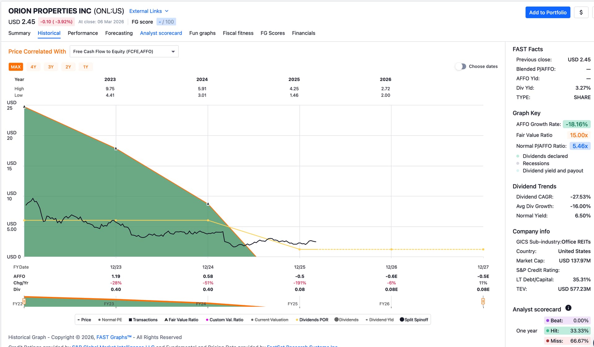 Got rid of ONL as well already a while back after the spinoff from Realty Income. It was already clear back then that office REITs were coming under pressure.