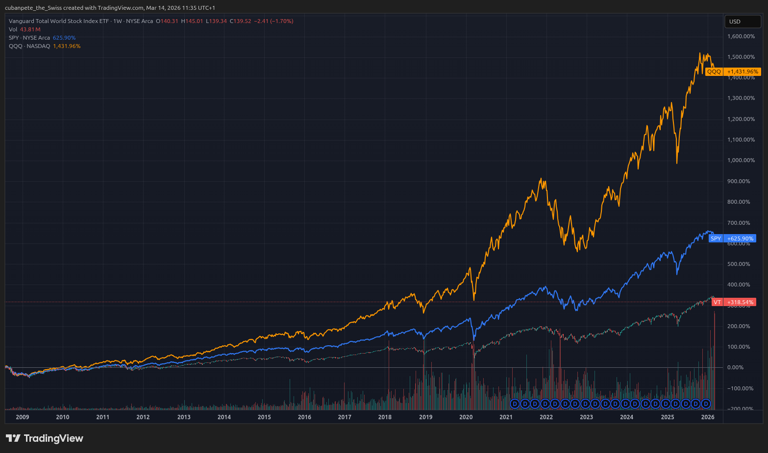 So Iām at the stage where Iām happy that my investment in VT for the past 5-6 years has lead to significant growth of my wealth, so Iām not complaining too much about VT and still recommend it to friends who just start out investing.