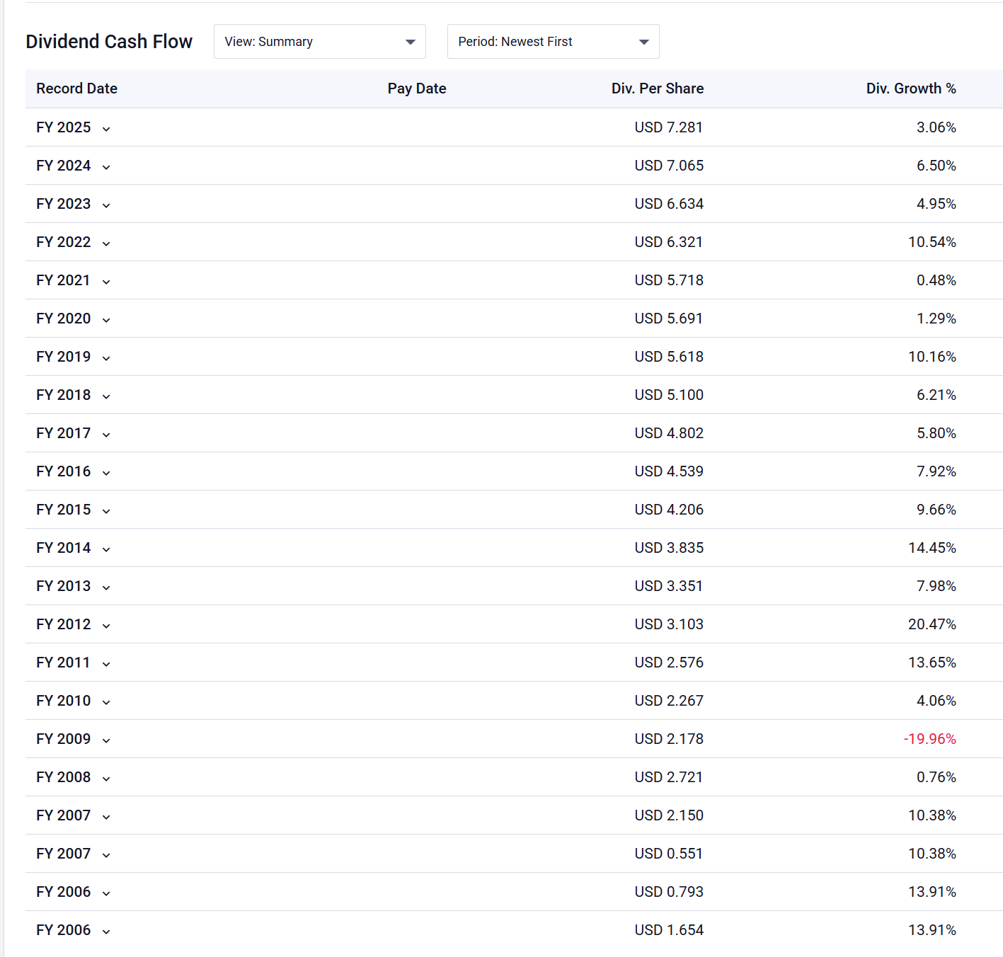 The compound dividend growth rate over that 20 year period was 6.24%.