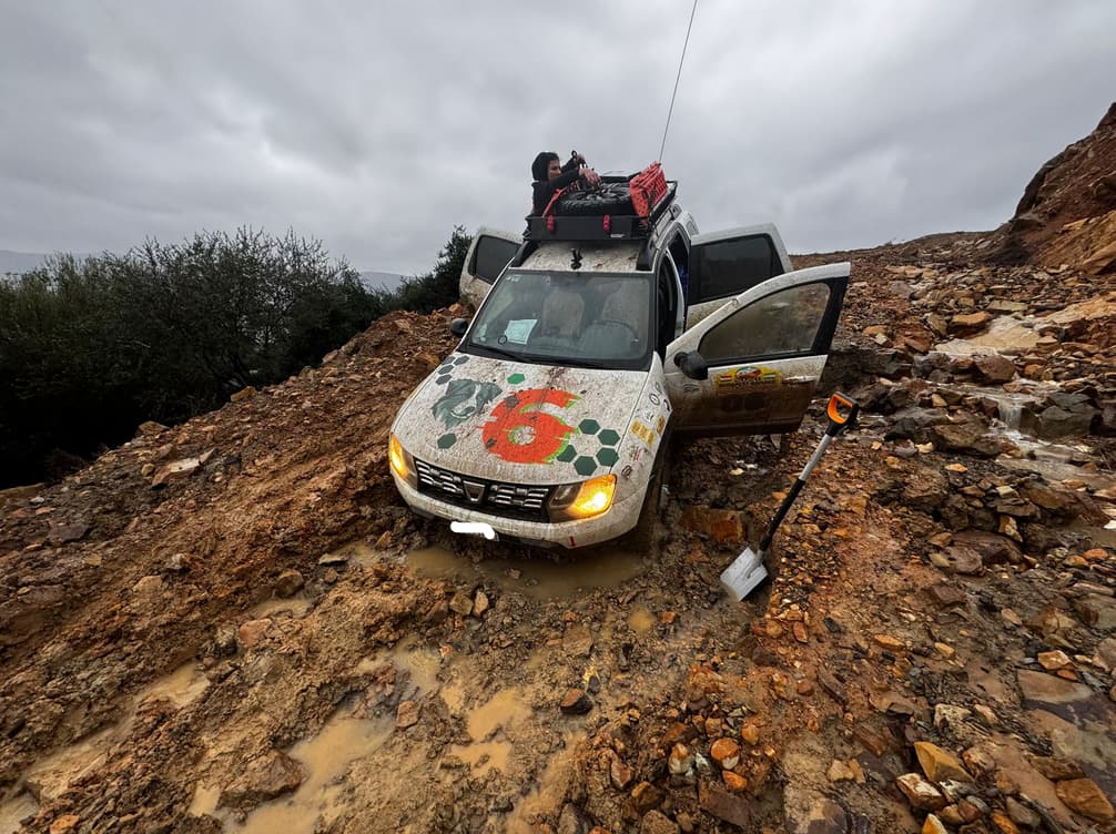 Pictures of what? the rally or the starlink? Here’s some “static” shots of the rally (when we were stuck basically)… If you look closely at the third one, you will see the white starlink on the rear spare wheel on the roof.