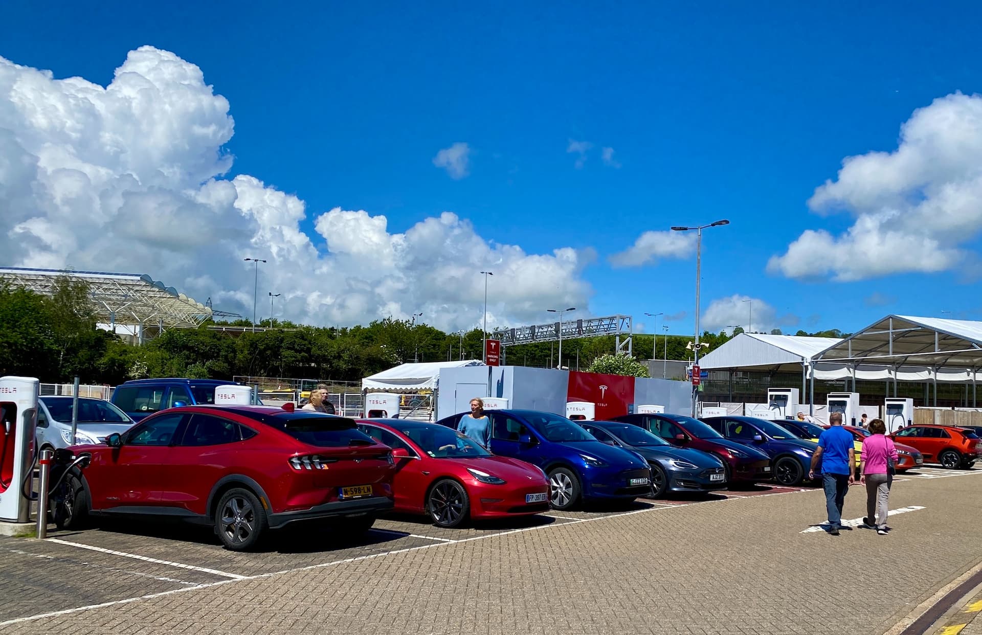 Charging at Tunnel UK side. 80% limit here. Tesla busy. One Mustang there. The non-Tesla chargers were not totally operative and one Dutchman in a VW iD4 who didn’t get the memo on Tesla sharing was quite miffed that he couldn’t charge.