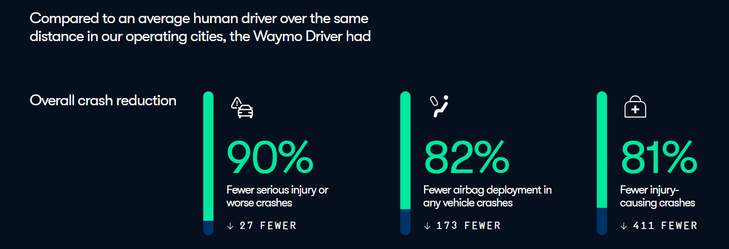 Waymo released some safety figures this month showing that travelling in a Waymo is much safer than a normal human driver, and presumably, Tesla is similar.