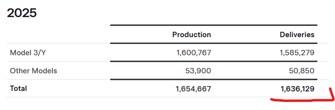And the year 2025 deliveries numbers were published yesterday evening in the US. From Tesla press release: