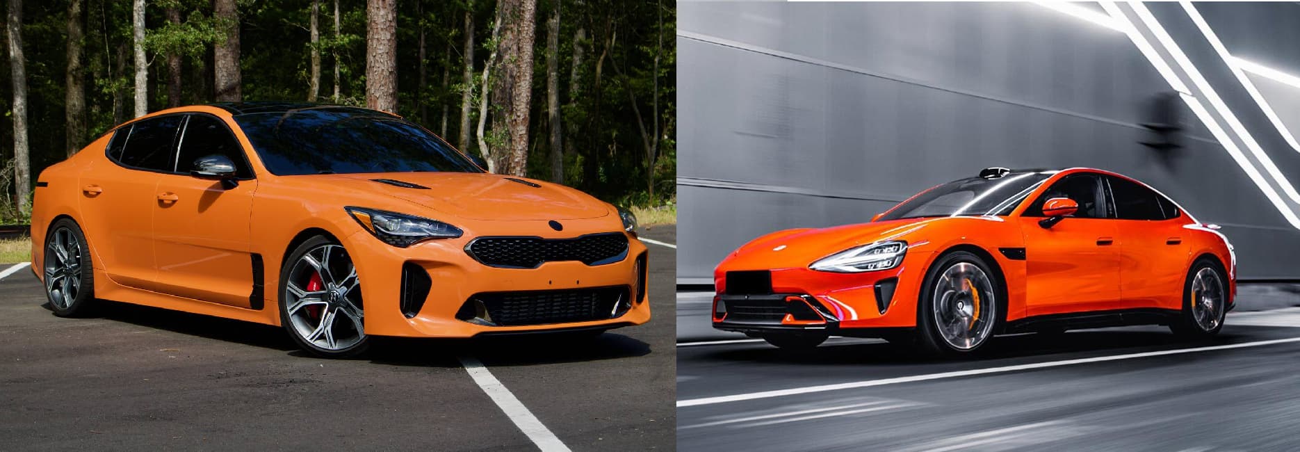 Hey, a video of the Beijing Auto Show 2024. First car it’s the car with the KIA Stinger V6 wheels and a strikingly similar bright orange: the Xiami SU 7.