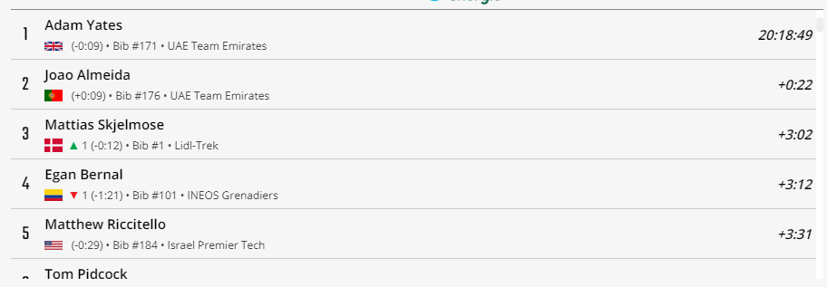 The riders are top notch - Bernal, who came fourth, has won the Tour de France outright and others have had stage wins.