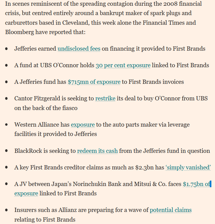 However, the eagle-eyed readers may have noticed that one of the prior excerpts from Jefferies’ statement described First Brands as the “servicer” on its factoring facility with Point Bonita. That implies First Brands was handling cash collection on behalf of its customers.